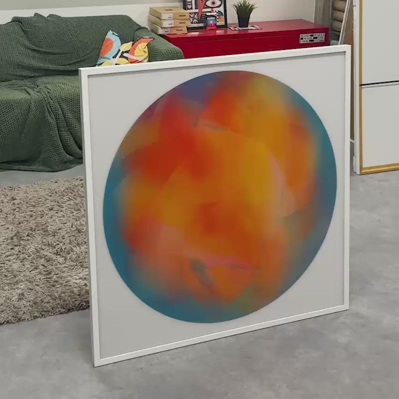 The lenticular technology allows the artwork to shift in color and movement when viewed from different angles, creating a dynamic visual experience. An integrated hanging system on the back of the frame ensures easy display.