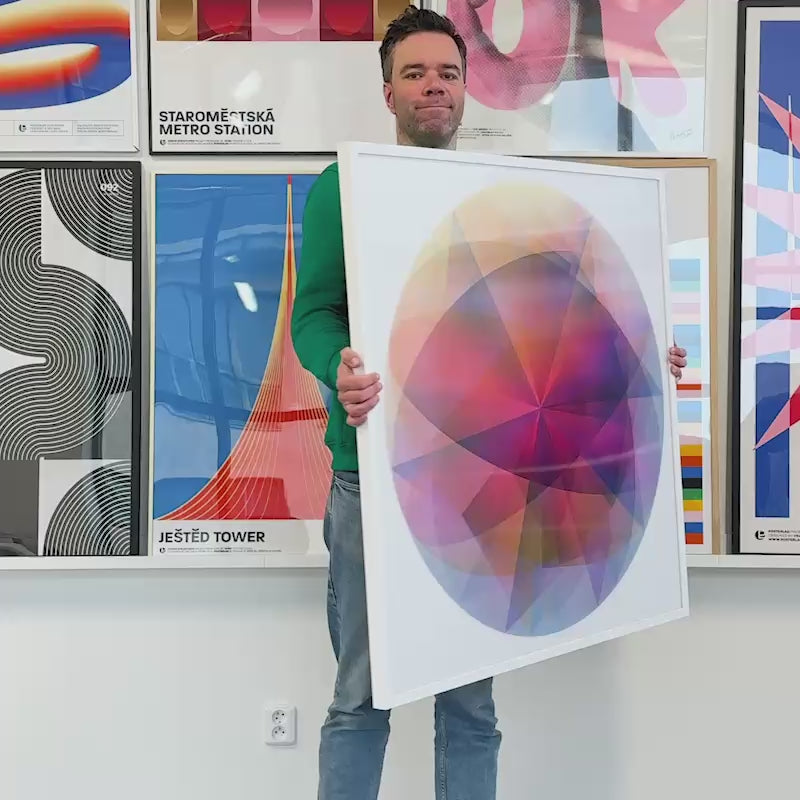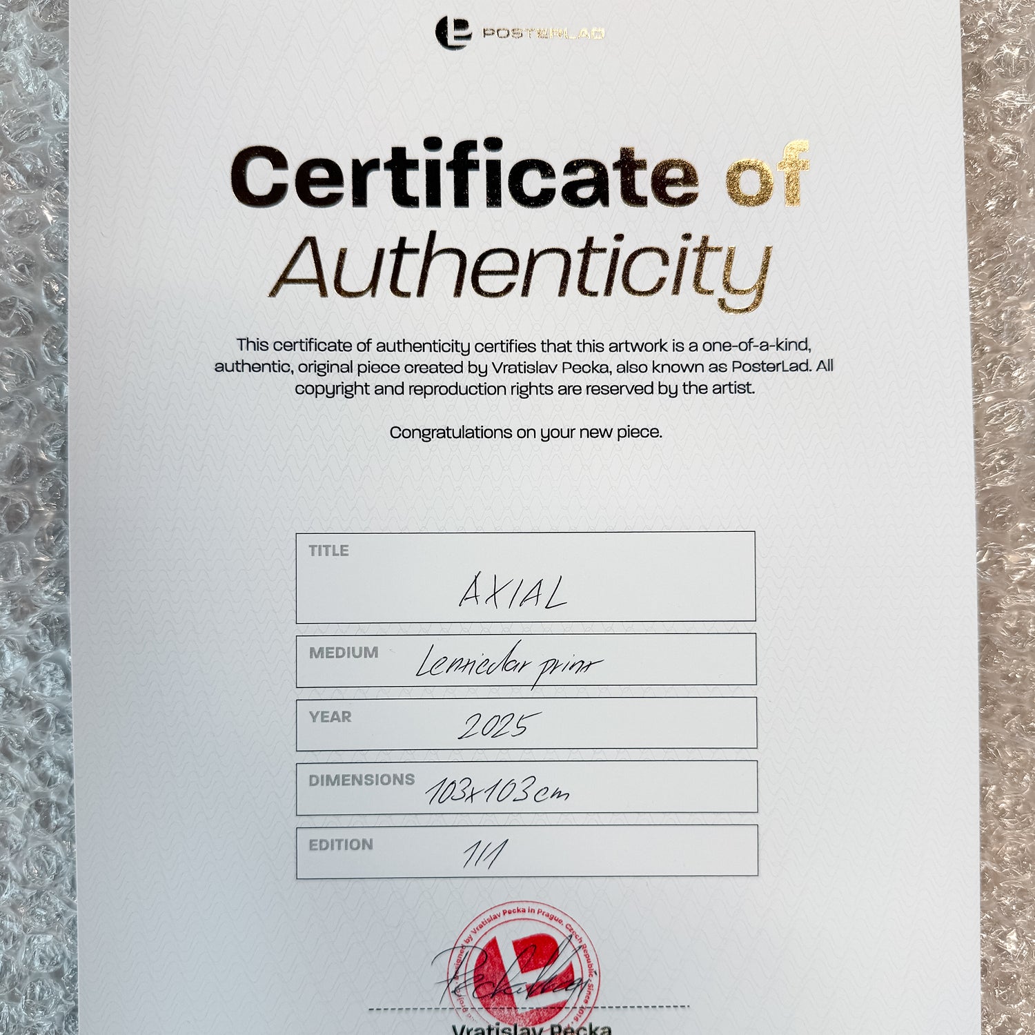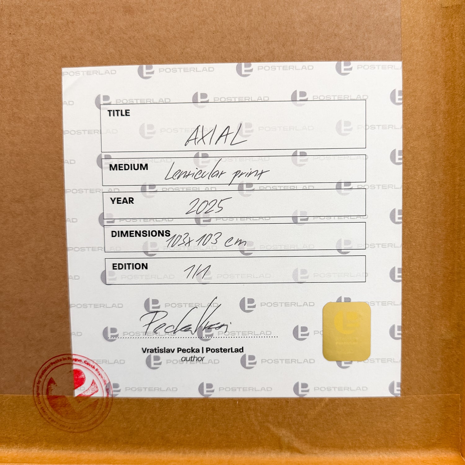 PosterLad's 1/1 artwork, a lenticular print (20 LPI) measuring 100x100 cm (103x103 cm in a white wooden frame). Hand-signed, stamped and numbered by the artist.